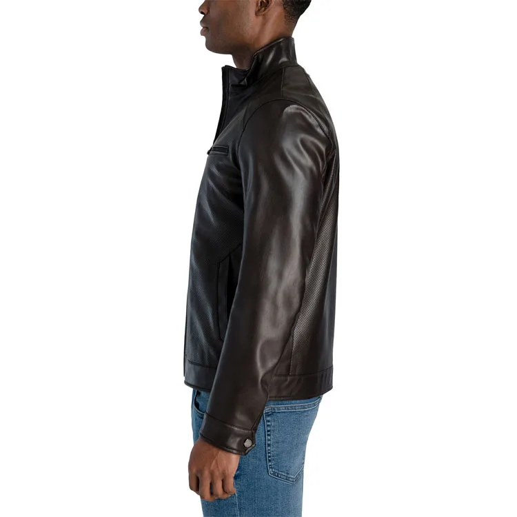 Boston Harbour Men S Stand Collar Leather Jacket With On Seam Pockets Black Large Amazon Ca Clothing Shoes Accessories